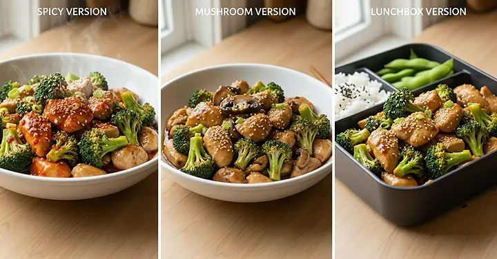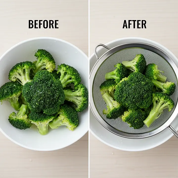 - ❌ 브로콜리를 생으로 바로 볶으면 물이 많이 나옵니다. 전자레인지 2분 후 물기 제거가 핵심입니다.